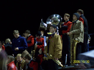 The Lorena Leopards played the Robinson Rockets and we won 21/7. This is always a bittersweet game for me because the other side has the majority of our church members and our youth group. Our band did not play on the field tonight. Justin showed his versitility tonight playing his trumpet and his tuba in the stands. But the Leopards did great. I was worried at first because Robinson scored first. Then we scored and took the lead and won. WAY TO LEOPARDS!!!!! The down side, we are in post season. We are going to the play offs. We will be there to support our band. GO BIG RED!!!!!
